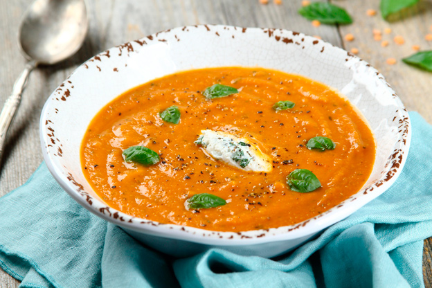 Zupa pomidorowa z soczewicą i ricottą