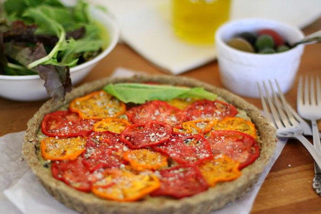 Tarta z suszonymi pomidorami, bazylią i oliwkami