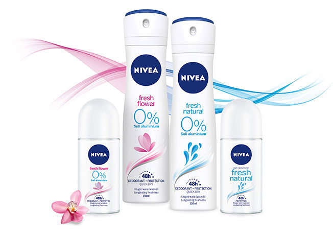Delikatna pielęgnacja połączona ze świeżymi zapachami dezodorantów NIVEA Fresh Flower & Fresh Natural