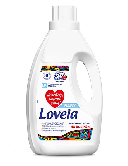 Od ponad 20 lat Lovela jako lider w kategorii prania dziecięcego dba o bezpieczeństwo najmłodszych, dostarczając mamom hipoalergiczne produkty do pielęgnacji dziecięcych ubranek. Dzięki delikatnej i przetestowanej dermatologicznie formule, są one bezpieczne dla skóry dziecka już od pierwszych dni życia oraz posiadają pozytywną opinię Instytutu Matki i Dziecka. Na znak współpracy przy 30. Finale WOŚP, w tym roku, po raz kolejny na sklepowych półkach znajdziemy limitowaną  edycję mleczek Lovela ze specjalnymi etykietami, na których widnieje czerwone serduszko Wielkiej Orkiestry Świątecznej Pomocy.